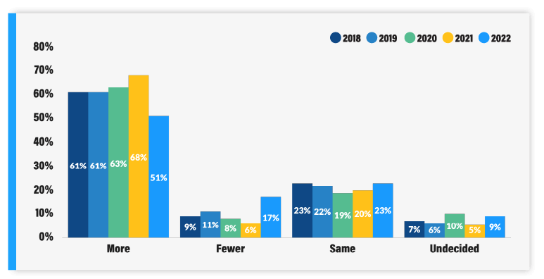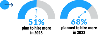 Additionally, the percentage of respondents planning to hire in 2023 was 51%, down from 68% a year ago, highlighting the impact of dramatic changes in the labor market in the past 12 months.